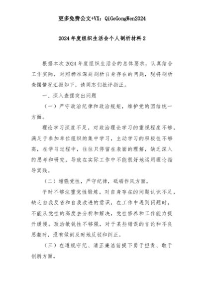 【七哥公文】2025年:2024年度组织生活会个人剖析材料2+更多免费公文+VX:QiGeGongWen2024+更多免费公文+VX:QiGeGongWen2024