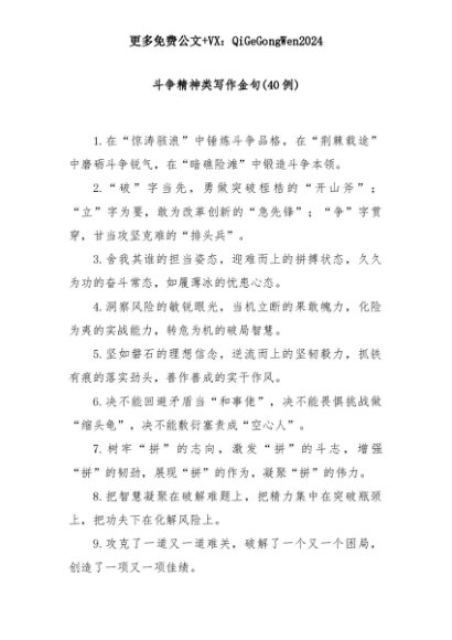 【七哥公文】2025年:(40例)斗争精神类写作金句+更多免费公文+VX:QiGeGongWen2024+更多免费公文+VX:QiGeGongWen2024