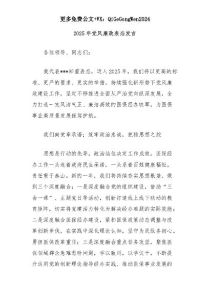 【七哥公文】2025年:2025年党风廉政表态发言+更多免费公文+VX:QiGeGongWen2024+更多免费公文+VX:QiGeGongWen2024