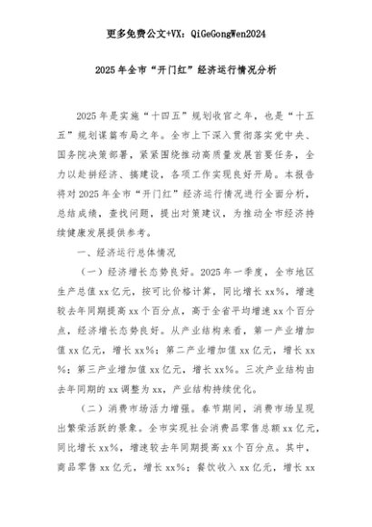 【七哥公文】2025年:2025年全市“开门红”经济运行情况分析+更多免费公文+VX:QiGeGongWen2024+更多免费公文+VX:QiGeGongWen2024