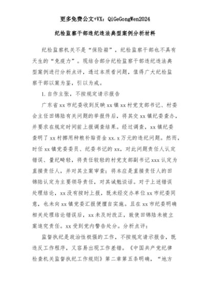 【七哥公文】2025年:纪检监察干部违纪违法典型案例分析材料+更多免费公文+VX:QiGeGongWen2024+更多免费公文+VX:QiGeGongWen2024
