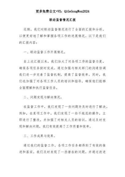 【七哥公文】2025年:联动监督情况汇报+更多免费公文+VX:QiGeGongWen2024+更多免费公文+VX:QiGeGongWen2024