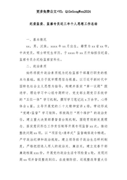 【七哥公文】2025年:纪委监委、监察专员近三年个人思想工作总结+更多免费公文+VX:QiGeGongWen2024+更多免费公文+VX:QiGeGongWen2024