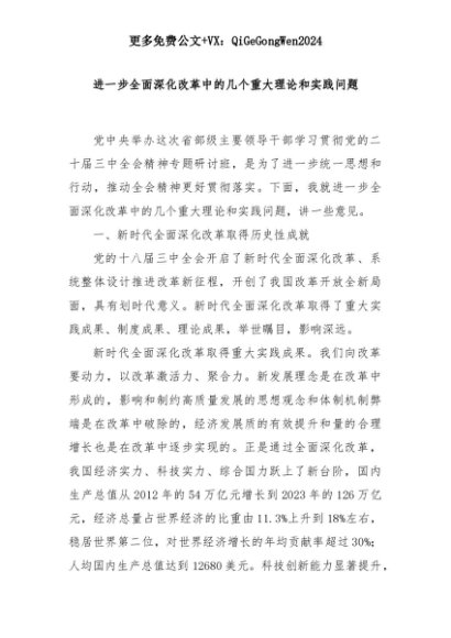 【七哥公文】2025年:进一步全面深化改革中的几个重大理论和实践问题+更多免费公文+VX:QiGeGongWen2024+更多免费公文+VX:QiGeGongWen2024