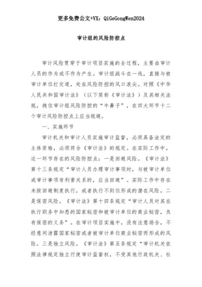 【七哥公文】2025年:审计组的风险防控点+更多免费公文+VX:QiGeGongWen2024+更多免费公文+VX:QiGeGongWen2024