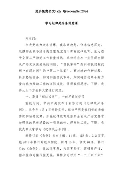 【七哥公文】2025年:学习纪律处分条例党课+更多免费公文+VX:QiGeGongWen2024+更多免费公文+VX:QiGeGongWen2024