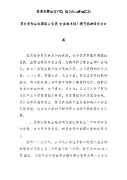【七哥公文】2025年:坚定贯彻总体国家安全观 切实筑牢四川现代化建设安全之基+更多免费公文+VX:QiGeGongWen2024+更多免费公文+VX:QiGeGongWen2024