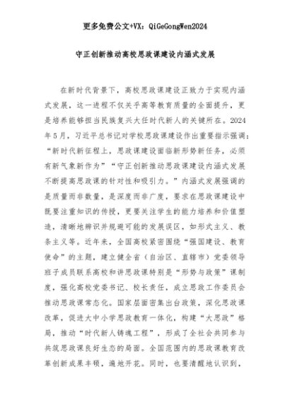 【七哥公文】2025年:守正创新推动高校思政课建设内涵式发展+更多免费公文+VX:QiGeGongWen2024+更多免费公文+VX:QiGeGongWen2024