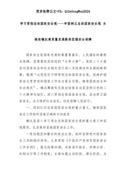 【七哥公文】2025年:学习贯彻总体国家安全观——牢固树立总体国家安全观 为推进镇沅高质量发展提供坚强安全保障+更多免费公文+VX:QiGeGongWen2024+更多免费公文+VX:QiGeGongWen2024