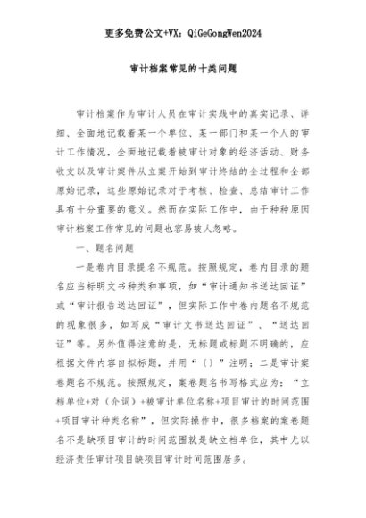 【七哥公文】2025年:审计档案常见的十类问题+更多免费公文+VX:QiGeGongWen2024+更多免费公文+VX:QiGeGongWen2024