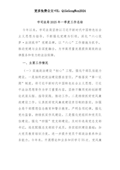 【七哥公文】2025年:市司法局2025年一季度工作总结+更多免费公文+VX:QiGeGongWen2024+更多免费公文+VX:QiGeGongWen2024