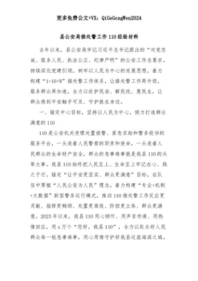 【七哥公文】2025年:县公安局接处警工作110经验材料+更多免费公文+VX:QiGeGongWen2024+更多免费公文+VX:QiGeGongWen2024