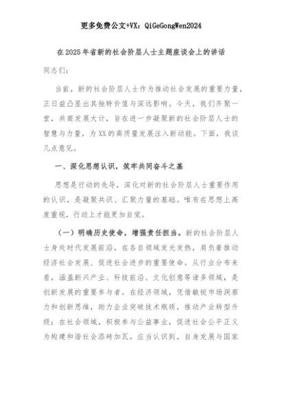 【七哥公文】2025年:在2025年省新的社会阶层人士主题座谈会上的讲话+更多免费公文+VX:QiGeGongWen2024+更多免费公文+VX:QiGeGongWen2024