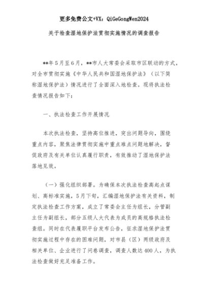 【七哥公文】2025年:关于检查湿地保护法贯彻实施情况的调查报告+更多免费公文+VX:QiGeGongWen2024+更多免费公文+VX:QiGeGongWen2024