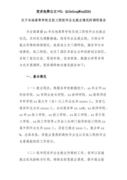 【七哥公文】2025年:关于本地高等学校及技工院校毕业生就业情况的调研报告+更多免费公文+VX:QiGeGongWen2024+更多免费公文+VX:QiGeGongWen2024