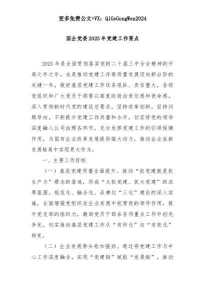 【七哥公文】2025年:国企党委2025年党建工作要点+更多免费公文+VX:QiGeGongWen2024+更多免费公文+VX:QiGeGongWen2024
