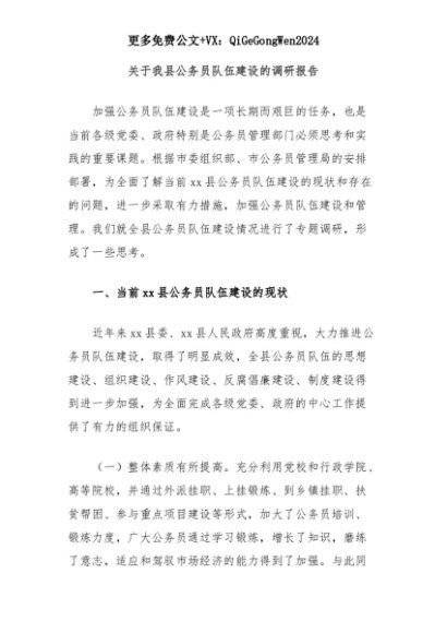 【七哥公文】2025年:关于我县公务员队伍建设的调研报告+更多免费公文+VX:QiGeGongWen2024+更多免费公文+VX:QiGeGongWen2024