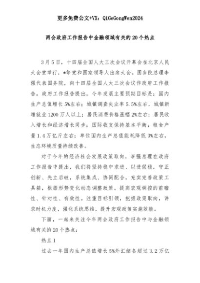 【七哥公文】2025年:两会政府工作报告中金融领域有关的20个热点+更多免费公文+VX:QiGeGongWen2024+更多免费公文+VX:QiGeGongWen2024