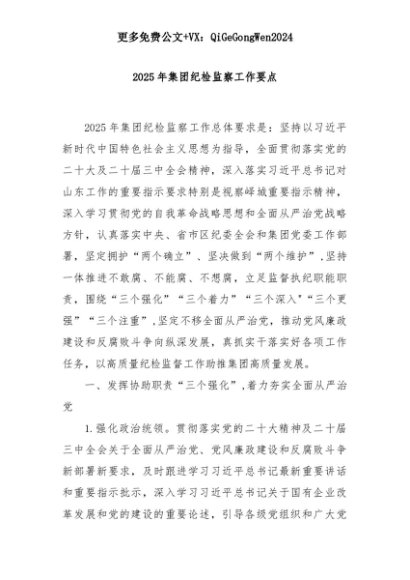 【七哥公文】2025年:2025年集团纪检监察工作要点+更多免费公文+VX:QiGeGongWen2024+更多免费公文+VX:QiGeGongWen2024
