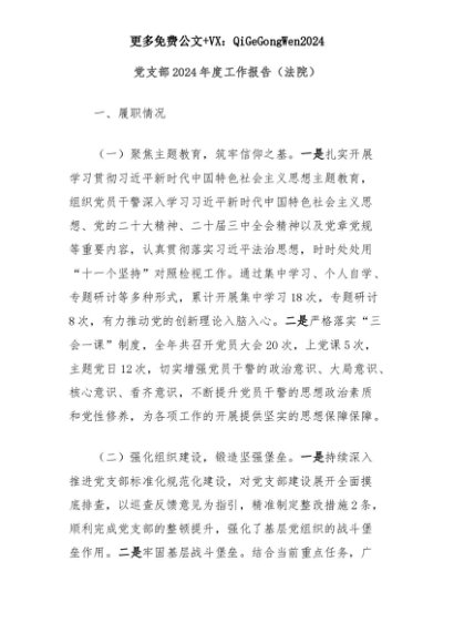 【七哥公文】2025年:党支部2024年度工作报告(法院)+更多免费公文+VX:QiGeGongWen2024+更多免费公文+VX:QiGeGongWen2024
