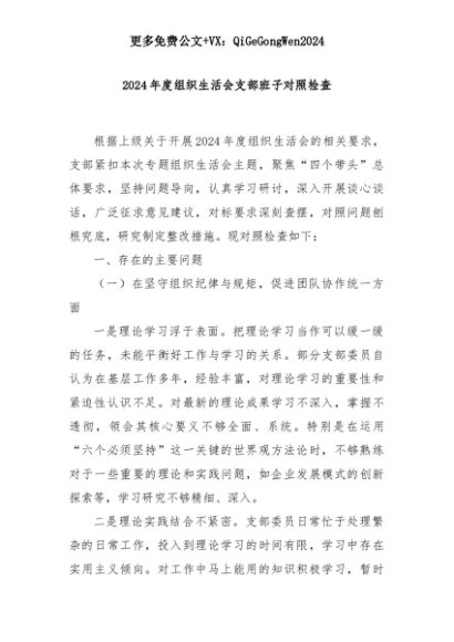 【七哥公文】2025年:2024年度组织生活会支部班子对照检查+更多免费公文+VX:QiGeGongWen2024+更多免费公文+VX:QiGeGongWen2024