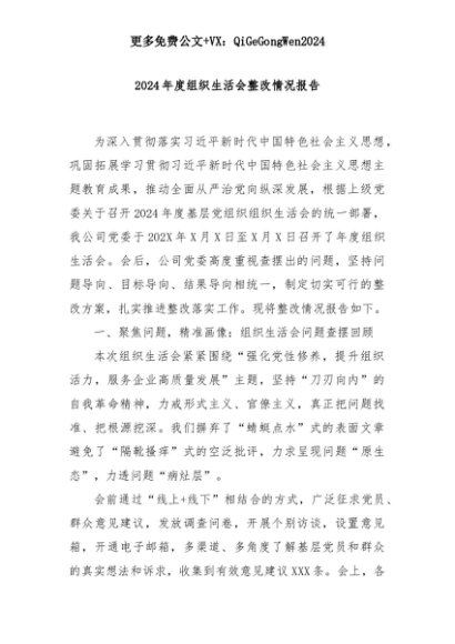 【七哥公文】2025年:2024年度组织生活会整改情况报告+更多免费公文+VX:QiGeGongWen2024+更多免费公文+VX:QiGeGongWen2024