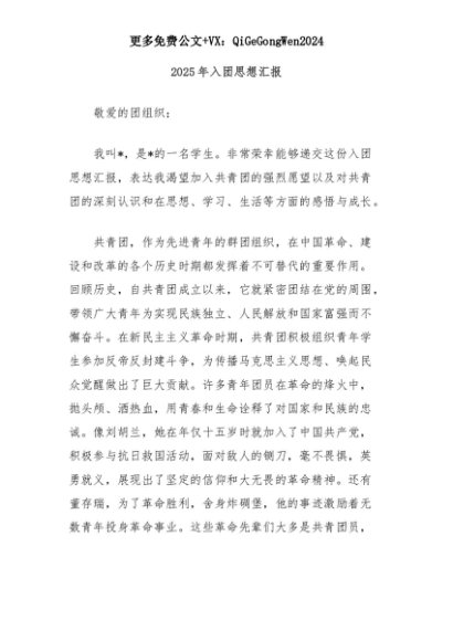【七哥公文】2025年:2025年入团思想汇报+更多免费公文+VX:QiGeGongWen2024+更多免费公文+VX:QiGeGongWen2024
