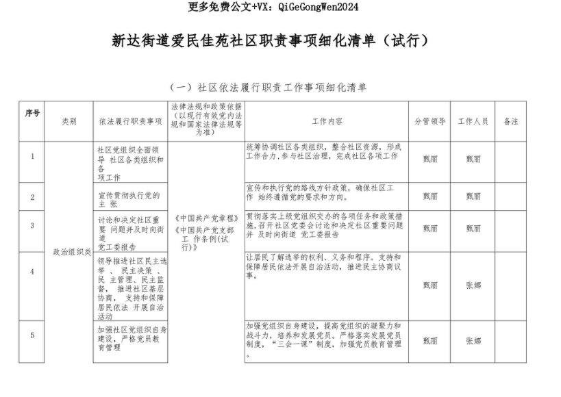 【七哥公文】2025年:社区职责事项细化清单(试行))+更多免费公文+VX:QiGeGongWen2024+更多免费公文+VX:QiGeGongWen2024