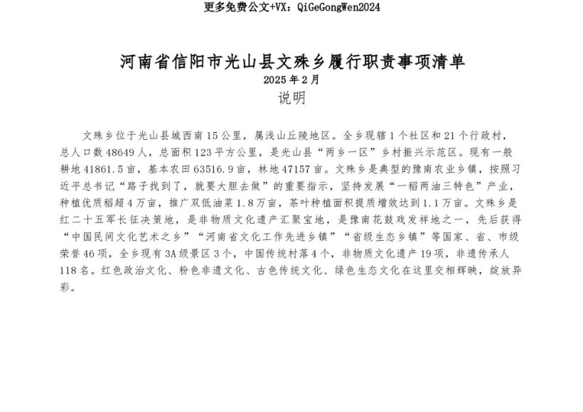 【七哥公文】2025年:河南乡镇履职清单2+更多免费公文+VX:QiGeGongWen2024+更多免费公文+VX:QiGeGongWen2024