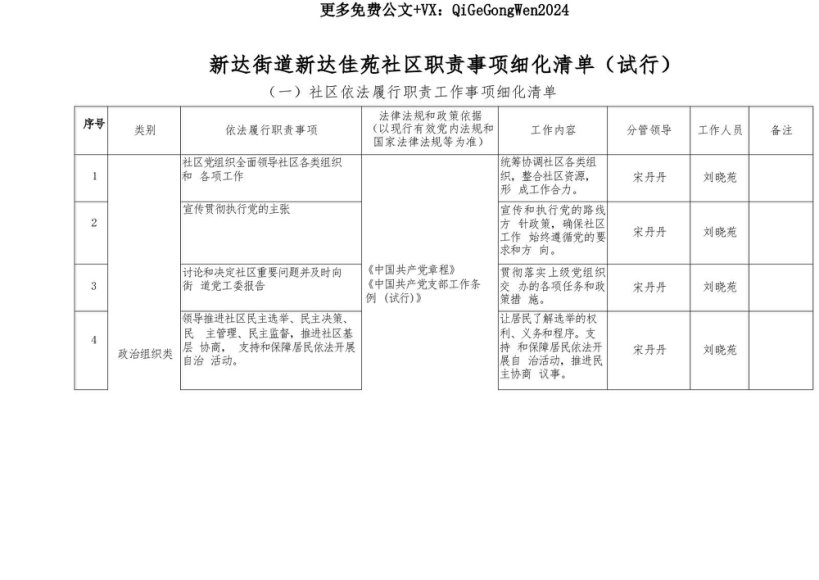 【七哥公文】2025年:社区职责事项细化清单(试行) (2)+更多免费公文+VX:QiGeGongWen2024+更多免费公文+VX:QiGeGongWen2024