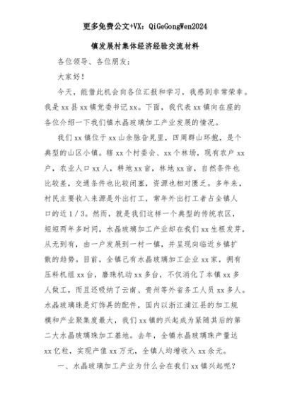 【七哥公文】2025年:镇发展村集体经济经验交流材料+更多免费公文+VX:QiGeGongWen2024+更多免费公文+VX:QiGeGongWen2024