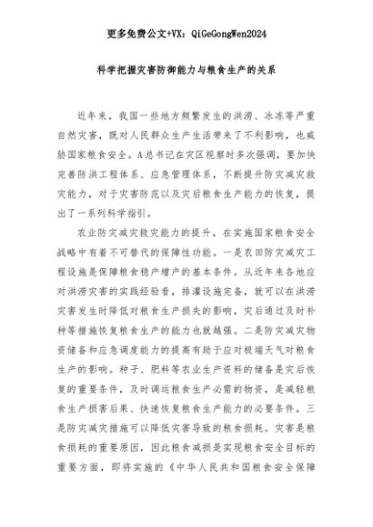 【七哥公文】2025年:科学把握灾害防御能力与粮食生产的关系+更多免费公文+VX:QiGeGongWen2024+更多免费公文+VX:QiGeGongWen2024