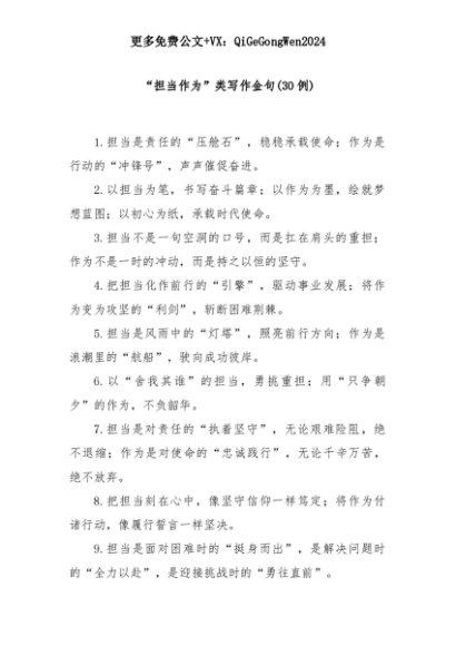 【七哥公文】2025年:(30例)“担当作为”类写作金句+更多免费公文+VX:QiGeGongWen2024+更多免费公文+VX:QiGeGongWen2024