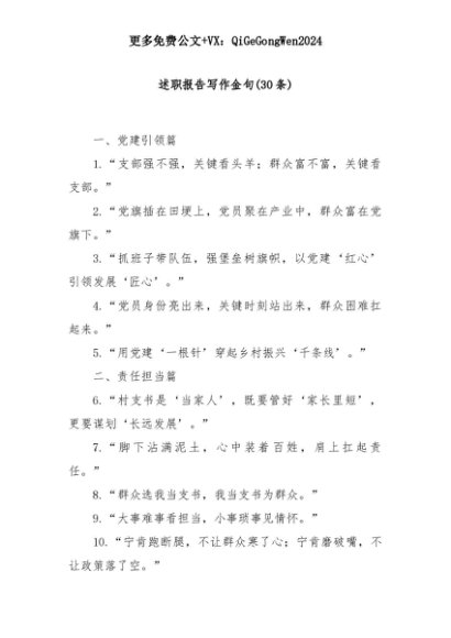 【七哥公文】2025年:(30条)述职报告写作金句+更多免费公文+VX:QiGeGongWen2024+更多免费公文+VX:QiGeGongWen2024