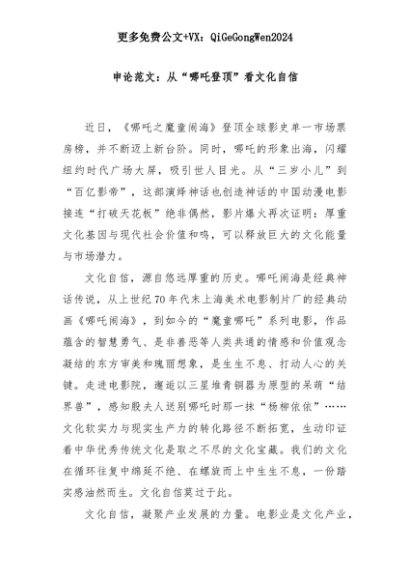 【七哥公文】2025年:申论范文:从“哪吒登顶”看文化自信+更多免费公文+VX:QiGeGongWen2024+更多免费公文+VX:QiGeGongWen2024