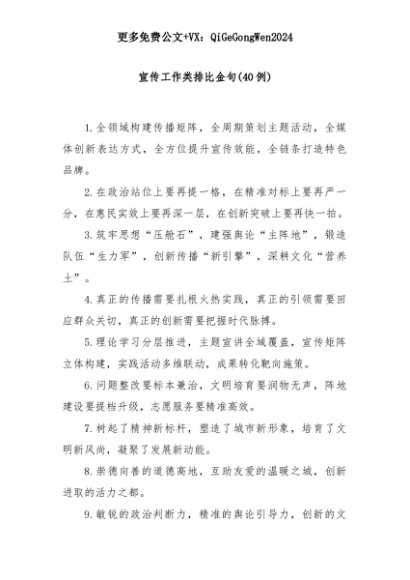 【七哥公文】2025年:(40例)宣传工作类排比金句+更多免费公文+VX:QiGeGongWen2024+更多免费公文+VX:QiGeGongWen2024