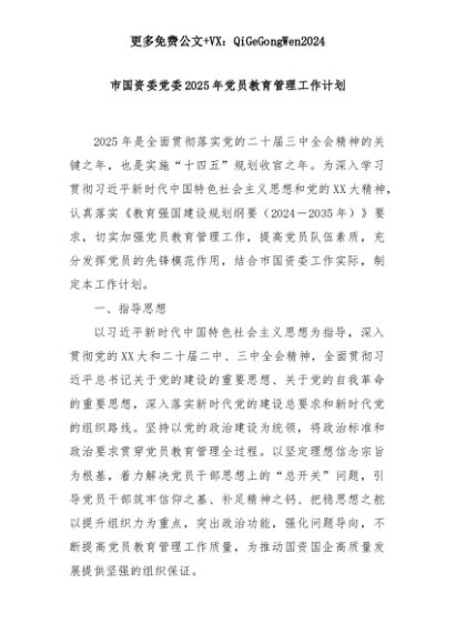 【七哥公文】2025年:市国资委党委2025年党员教育管理工作计划+更多免费公文+VX:QiGeGongWen2024+更多免费公文+VX:QiGeGongWen2024