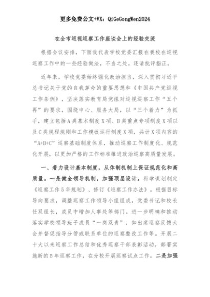 【七哥公文】2025年:在全市巡视巡察工作座谈会上的经验交流+更多免费公文+VX:QiGeGongWen2024+更多免费公文+VX:QiGeGongWen2024