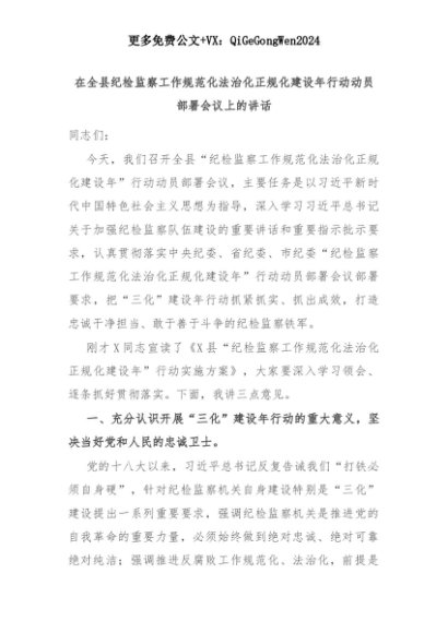 【七哥公文】2025年:在全县纪检监察工作规范化法治化正规化建设年行动动员部署会议上的讲话+更多免费公文+VX:QiGeGongWen2024+更多免费公文+VX:QiGeGongWen2024