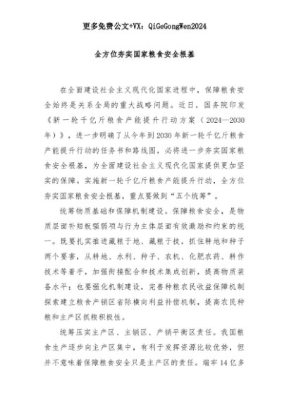 【七哥公文】2025年:全方位夯实国家粮食安全根基+更多免费公文+VX:QiGeGongWen2024+更多免费公文+VX:QiGeGongWen2024