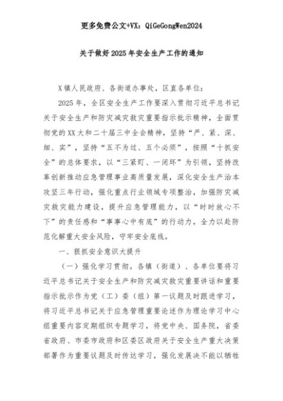 【七哥公文】2025年:关于做好2025年安全生产工作的通知+更多免费公文+VX:QiGeGongWen2024+更多免费公文+VX:QiGeGongWen2024