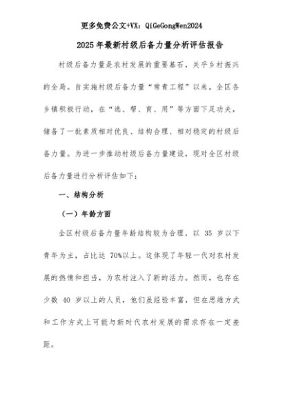 【七哥公文】2025年:2025年最新村级后备力量分析评估报告+更多免费公文+VX:QiGeGongWen2024+更多免费公文+VX:QiGeGongWen2024