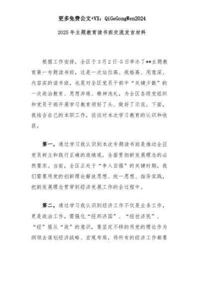 【七哥公文】2025年:2025年主题教育读书班交流发言材料+更多免费公文+VX:QiGeGongWen2024+更多免费公文+VX:QiGeGongWen2024