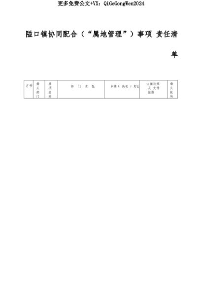【七哥公文】2025年:xx镇协同配合(“属地管理”)事项责任清单+更多免费公文+VX:QiGeGongWen2024+更多免费公文+VX:QiGeGongWen2024