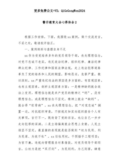 【七哥公文】2025年:警示教育大会心得体会2+更多免费公文+VX:QiGeGongWen2024+更多免费公文+VX:QiGeGongWen2024