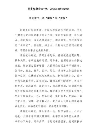 【七哥公文】2025年:申论范文:用“脚板”补“短板”+更多免费公文+VX:QiGeGongWen2024+更多免费公文+VX:QiGeGongWen2024