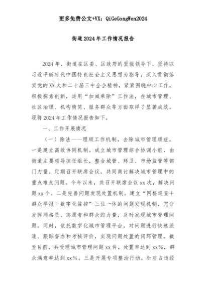 【七哥公文】2025年:街道2024年工作情况报告+更多免费公文+VX:QiGeGongWen2024+更多免费公文+VX:QiGeGongWen2024