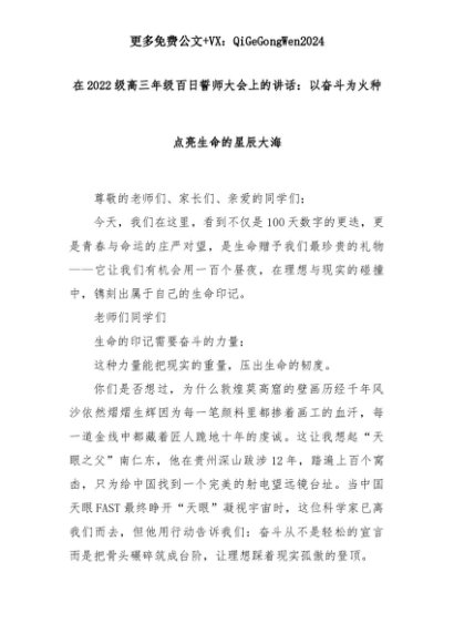 【七哥公文】2025年:在2022级高三年级百日誓师大会上的讲话:以奋斗为火种 点亮生命的星辰大海+更多免费公文+VX:QiGeGongWen2024+更多免费公文+VX:QiGeGongWen2024