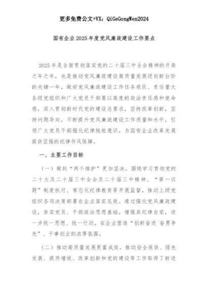【七哥公文】2025年:国有企业2025年度党风廉政建设工作要点+更多免费公文+VX:QiGeGongWen2024+更多免费公文+VX:QiGeGongWen2024