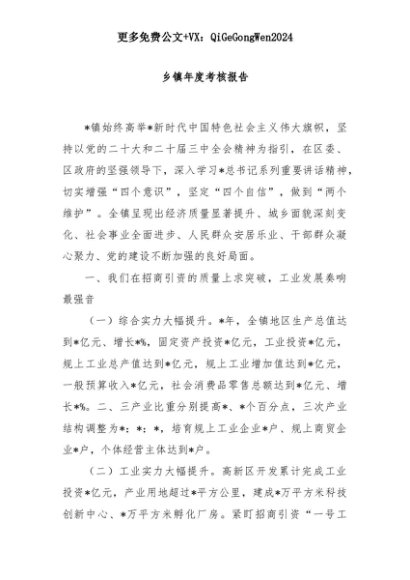 【七哥公文】2025年:乡镇年度考核报告+更多免费公文+VX:QiGeGongWen2024+更多免费公文+VX:QiGeGongWen2024